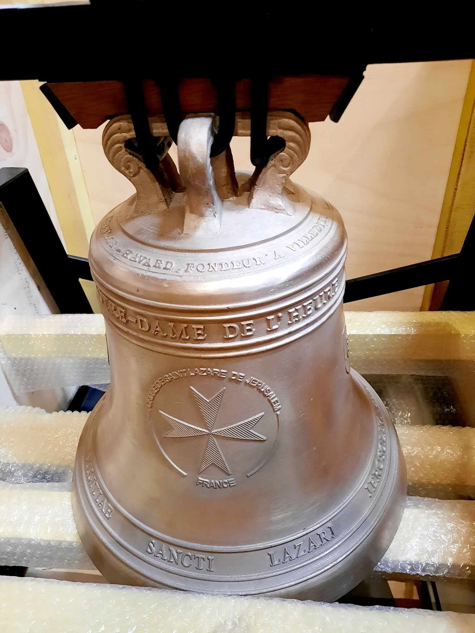 Alors que l’UNESCO lançait un grand programme de rénovation de la ville de Mossoul, en Irak (reviving the spirit of Mosul), les Chevaliers de Saint Lazare ont apporté leur soutien aux Dominicains pour la remise en état de l’église Notre Dame de l’Heure. Tout d’abord en montant le projet qui a permis de remettre en place une horloge et de fondre les trois cloches montées dans le clocher. Puis, en offrant la cloche qui résonnera dans le campanile situé au-dessus de la sacristie pour appeler les fidèles à la prière.